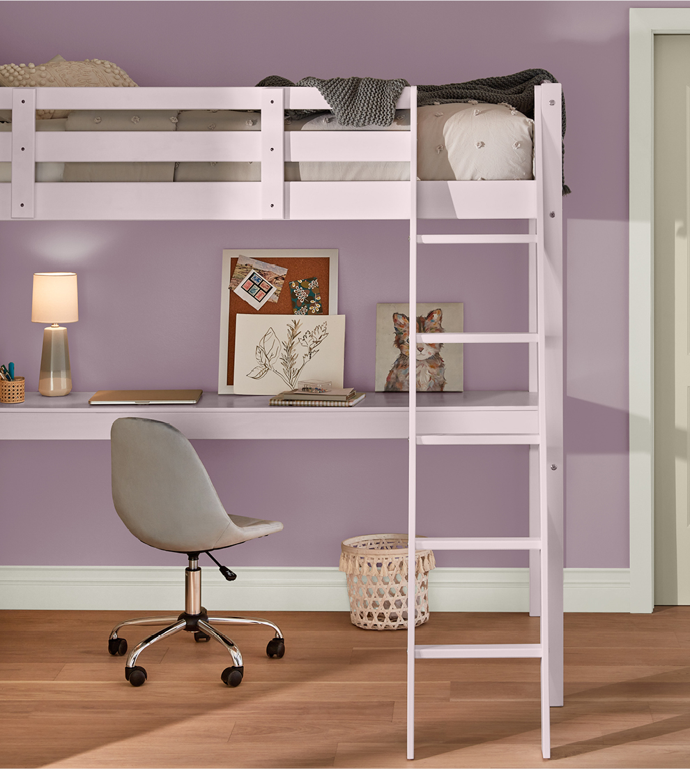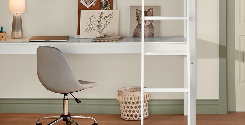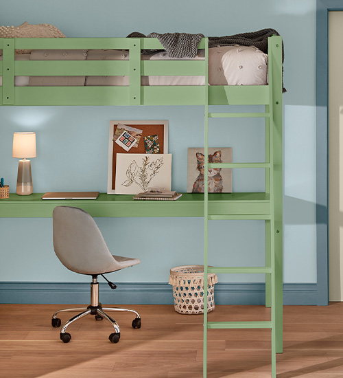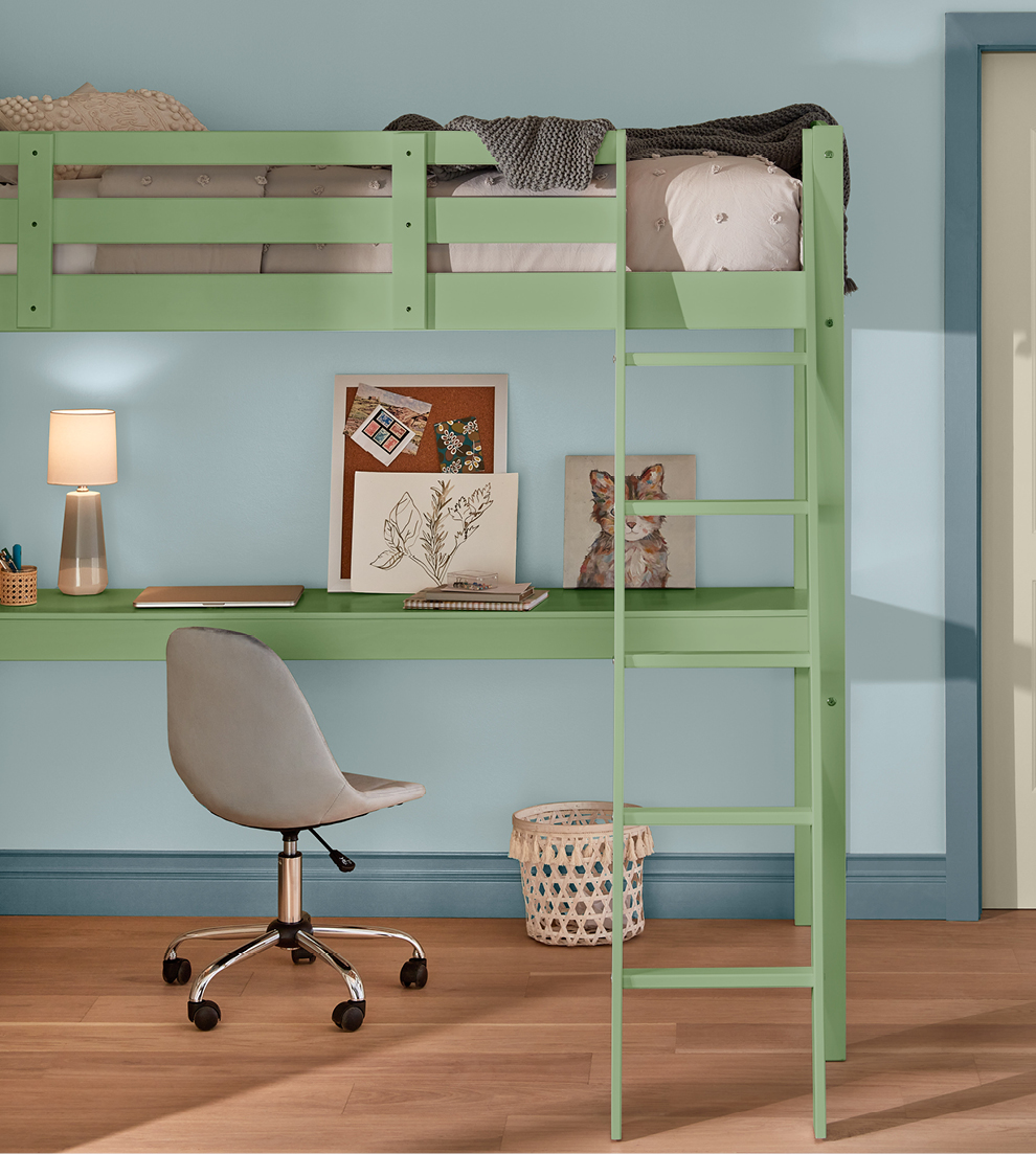 Our three-color palettes start with a wall color — from neutral to bold. Next, we add tones to the bunk bed and trim in colorful combinations to please every personality.