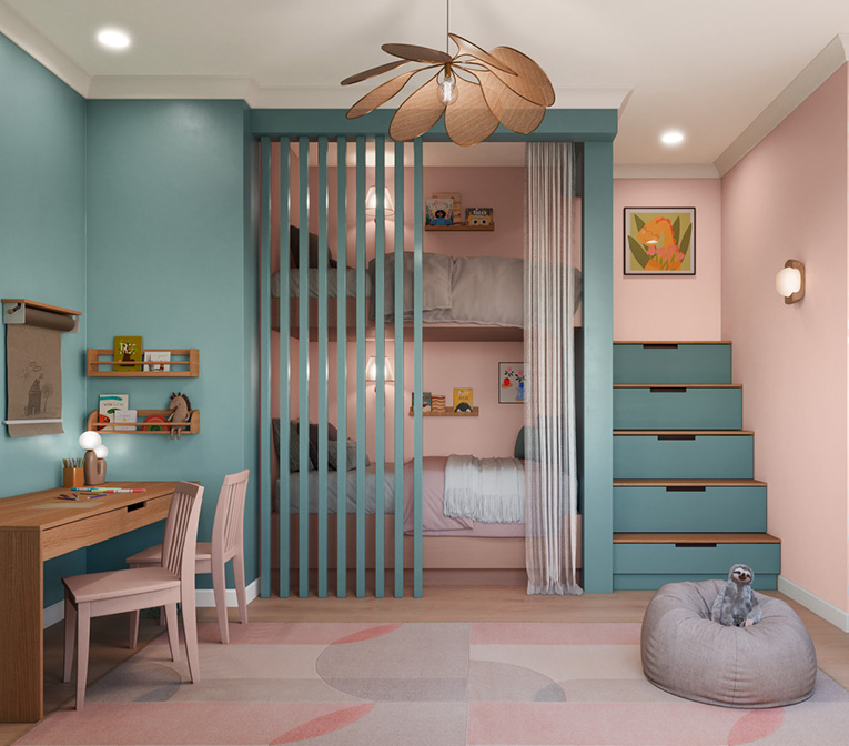 Help kids celebrate time away from their screens. Soothing tones encourage time to stay still and ponder the light and joyful space. Sleep and study are integral to growth and color choices can have strong impacts on both.