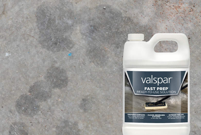 1. If you have stains, apply Valspar Fast Prep Ready-to-Use Solution to those areas, scrub with a stiff brush and rinse with water.