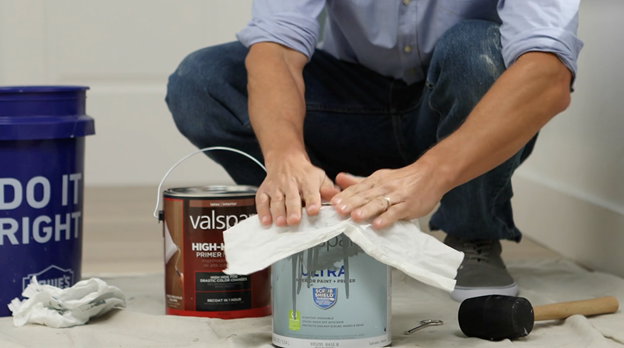 Siempre selle y guarde la pintura sobrante; nunca sabrá cuándo la necesitará para un retoque rápido. Limpie cualquier exceso de pintura del borde y el exterior de la lata de pintura, luego guárdela en un lugar seco y fresco, lejos de la luz solar.