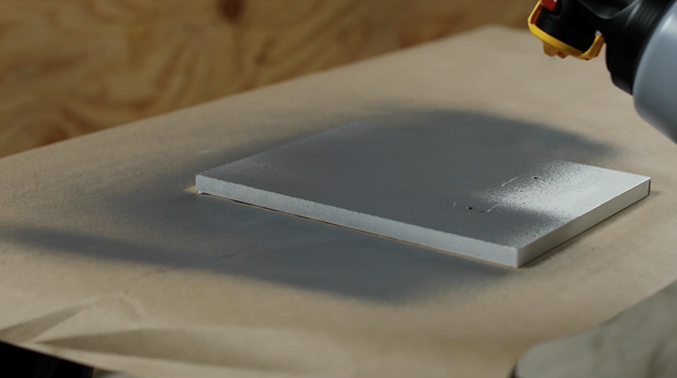 Una vez que tenga el rociador, se recomienda realizar una prueba. Use un trozo grande de cartón de desecho para practicar y probar rociar a diversas distancias y velocidades.