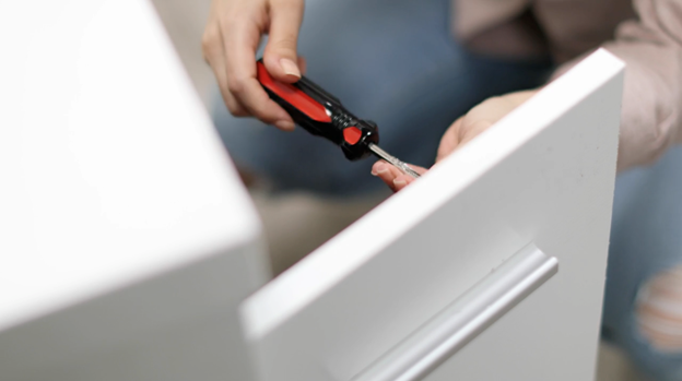 PASO 6: VUELVA A COLOCAR PUERTAS, CAJONES Y HERRAJES